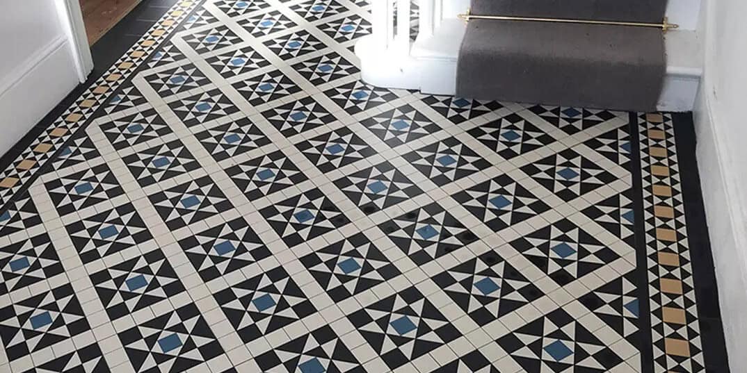 Most mosaic shower floors are installed sheet-by-sheet in a straight grid. The pattern within the tile – the arrangement of chips on the mesh – provides the visual interest. Complex secondary patterns require cutting individual tiles from sheets, which significantly increases labour cost.